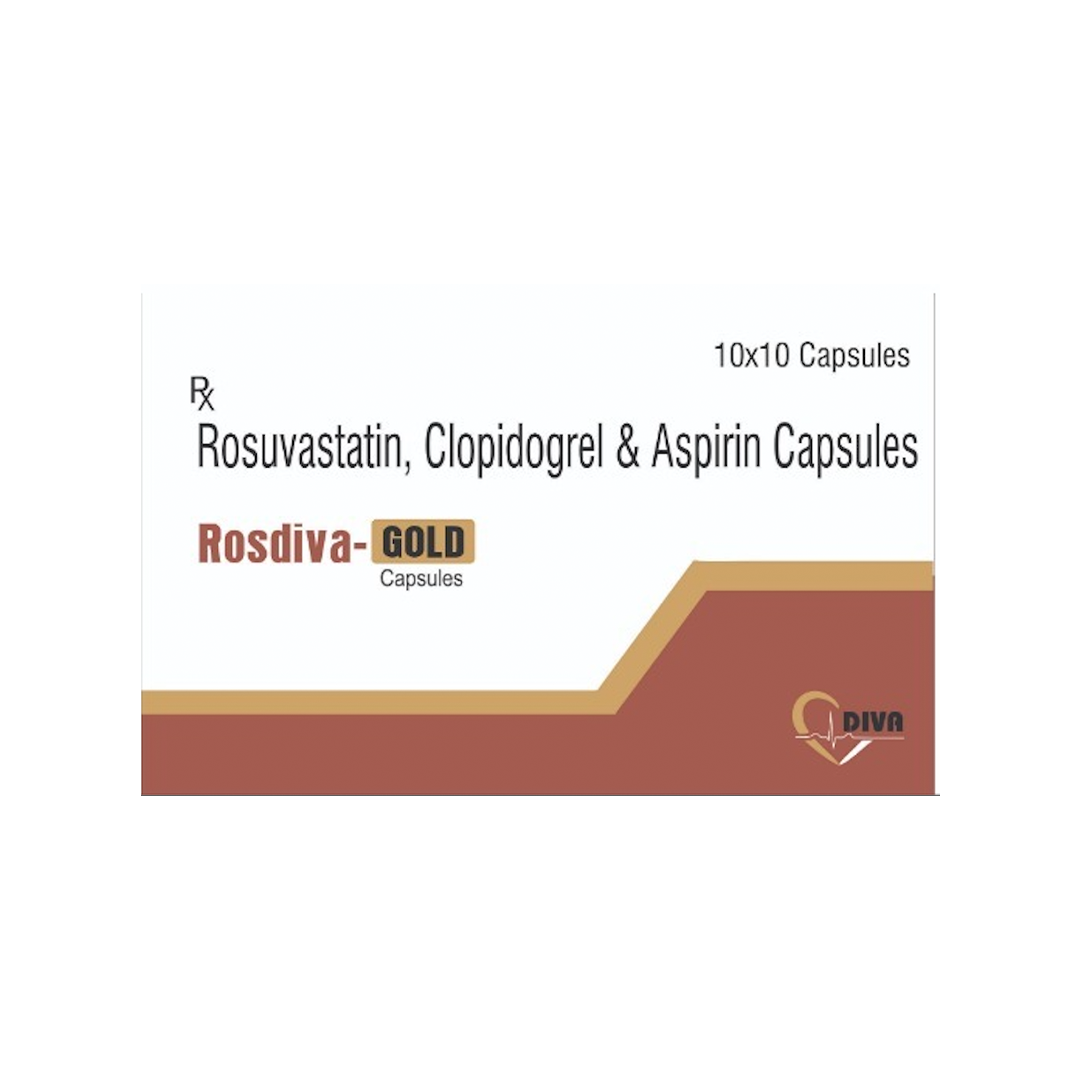 Rosdiva-Gold Capsule is used for prevention of heart attack, stroke and treatment of peripheral vascular disease. It is a combination of medicines that prevent clot formation in the blood vessels. It also helps to reduce increased cholesterol and triglycerides levels.